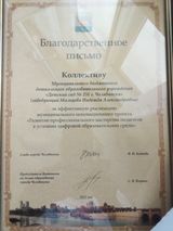 На августовской конференции работников образования – 2022 «Челябинск – город возможностей. Единое муниципальное образовательное пространство», которая проходила в МАОУ "Образовательный центр №7 г. Челябинска", коллектив дошкольного учреждения был отмечен Благодарственным письмом главы г. Челябинска Н. П. Котовой и Председателем комитета по делам образования С.В. Портье за эффективную реализацию муниципального инновационного проекта "Развитие профессионального мастерства педагогов в условиях цифровой образовательной среды".